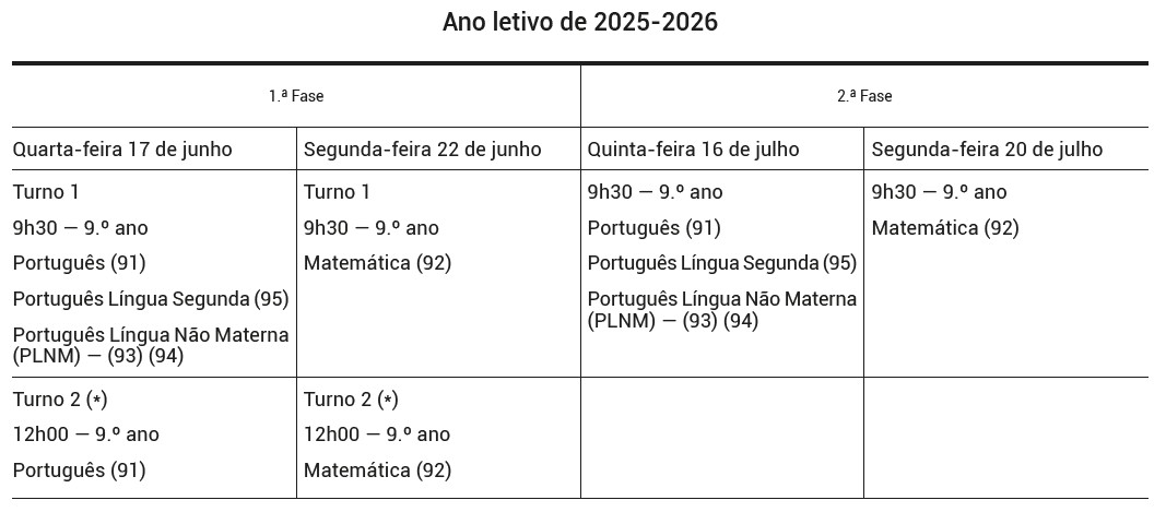 Calendário das Provas de Equivalência à Frequência: